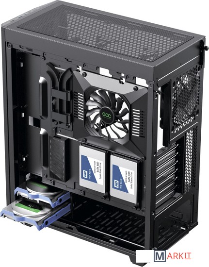 спереди: 3x120mm / 2x140mmсверху: 2x120mm / 2x140mmсзади: 1x120mm (ARGB в комплекте)сбоку: 1x120mm мм в комплекте |