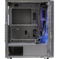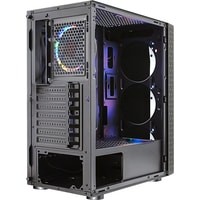 Формат шасси mATX/ATX черного цвета.Прочное шасси из стали с качественной завальцовкой.Разъем USB 3.0, три посадочных места для SSD.Боковая панель из закаленного стекла.Съемная корзина для HDD, кабельные каналы.RGB подсветка передней панели с 16-ю режимами, 12 см LED вентилятор сзади, кнопки управления сверху.Блок питания в отдельном воздуховоде, фильтр забора воздуха.